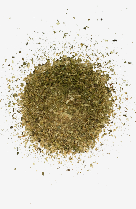 Zusammensetzung: Baldrianwurzel gemahlen(24%), Hanfblattpulver (20%), Melissenblätter (11%), Ginkgoblätter (11%), Hopfenblüten (11%), Kamillenblüten (11%), Reinhefe (11%). Analytische Bestandteile: Rohprotein (16,6%), Rohfaser (10,7%), Rohasche (14,5%), Rohfett (3,2%), HCL-unlösliche Asche (4,6%).